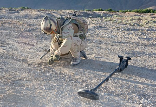 Geniemilitairen zoeken in Afghanistan naar Improvised Explosive Devices (IED’s). COIN-operaties bestaan al langer, maar in Irak en Afghanistan moesten westerse krijgsmachten zich aanpassen aan nieuwe tactieken zoals het gebruik van IED’s. Foto MCD, Arnoud Schoor