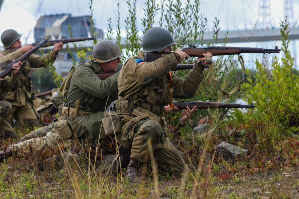 Nabootsing van de inzet van de 82nd Airborne Division bij Nijmegen in september 1944. Reenactors laten het belangrijke stafwerk doorgaans links liggen, omdat het niet tot de verbeelding spreekt. Foto US Army, Catessa Palone