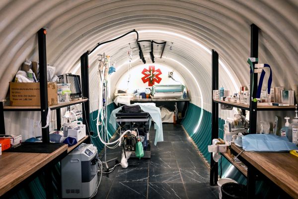 Een Oekraïense ondergrondse operatiekamer. Ondergronds inrichten van medische faciliteiten voorkomt onderkenning en aanvallen door UAS en biedt bescherming tegen artilleriebeschietingen. Foto ANP, Polaris, Dmytro Smolienko
