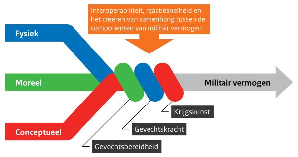 Een uitdagende aanpassing is het introduceren van de ‘morele component’ ter vervanging van de doctrineterm ‘mentale component’. Generaties Nederlandse militairen zijn opgevoed met de ‘mentale component’ als één van de drie onderdelen van het militair vermogen. De Engelstalige NAVO-doctrine en specifiek de AJP-01 gebruikt echter de term moral component. De morele component is een combinatie van moraliteit en moreel. Na raadpleging van het Talencentrum Defensie werd besloten om dichter bij de NAVO-term te blijven en de term morele component te introduceren.